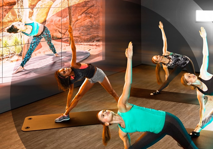 Think how it might be for them on day one. Walk into the studio with them, show them what a safe and comfortable place it can be. Introduce them to a virtual class and let them know there’ll be no-one noticing they’re the new person: just them and a group of like-minded members enjoying an excellently taught, easy-to-follow class up on the big screen.